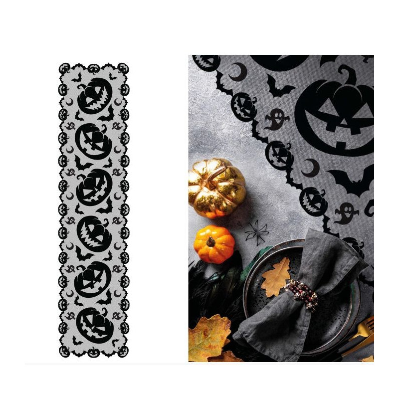 CHEMIN DE TABLE NOIR CITROUILLES 200x45cm