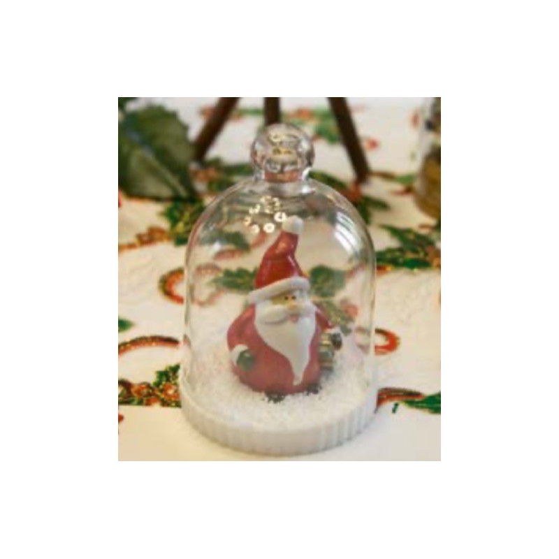 Cloche avec père-noël, en résine, avec neige. Dimensions: D6.8x10cm.