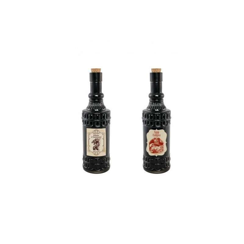 1 bouteille noire en verre Halloween. Dimensions: D6,5xH23cm. Envoi modèle aléatoire.