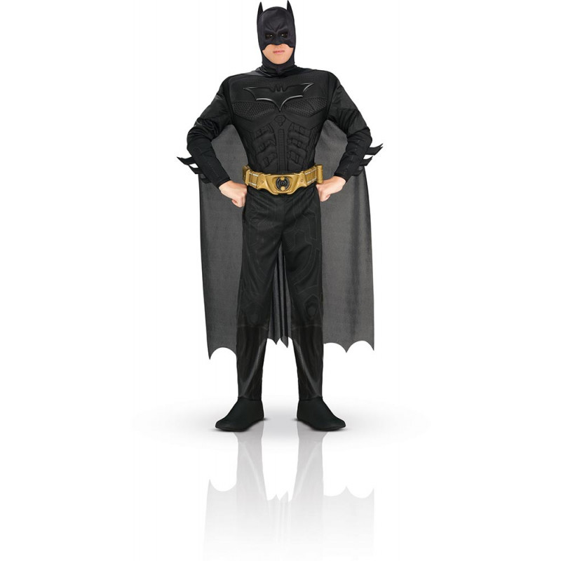 Ce déguisement de Batman luxe, contient : Combinaison 3D avec couvre-bottes, cape, masque et ceinture. Déguisement sous licence officielle.