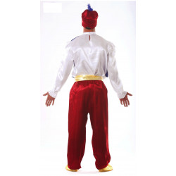 Ce déguisement d'Aladin contient: chapeau, chemise, gilet, ceinture, pantalon.