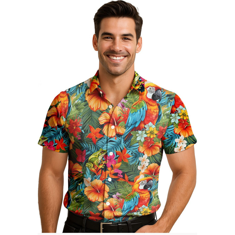 CHEMISE HAWAI HOM.L (52-54) FLEURS PERROQUETS