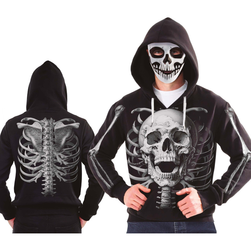 SWEAT AVEC CAPUCHE NOIR SQUELETTE + MASQUE HOM L