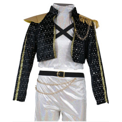 Ce déguisement de danseuse Kpop, contient: veste, ceinture, pantalon, t-shirt.