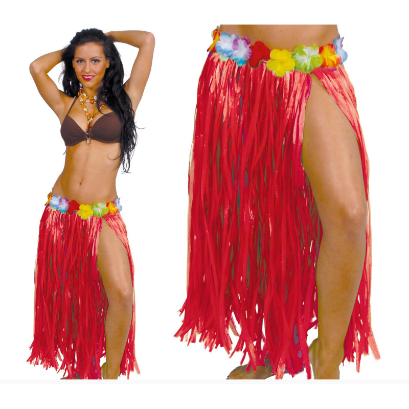 Jupe Hawaïenne longue (75cm), rouge, élastique.