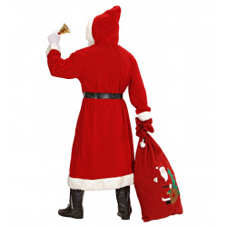 Ce déguisement luxe de père-noël contient: manteau avec capuche, ceinture, surbottes avec boucles, perruque, barbe avec moustache, sourcils.