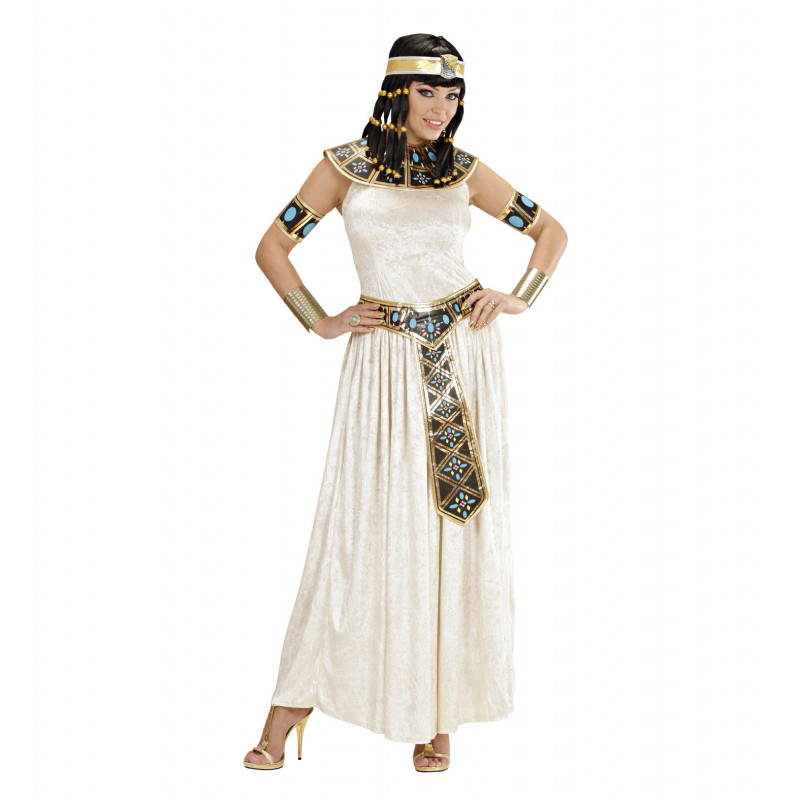 Ce déguisement d'Egyptienne contient: robe, col, ceinture, bracelets.