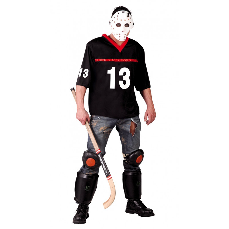 Ce déguisement de joueur de hockey contient: masque, t-shirt, épaulettes. (Accessoires non inclus).