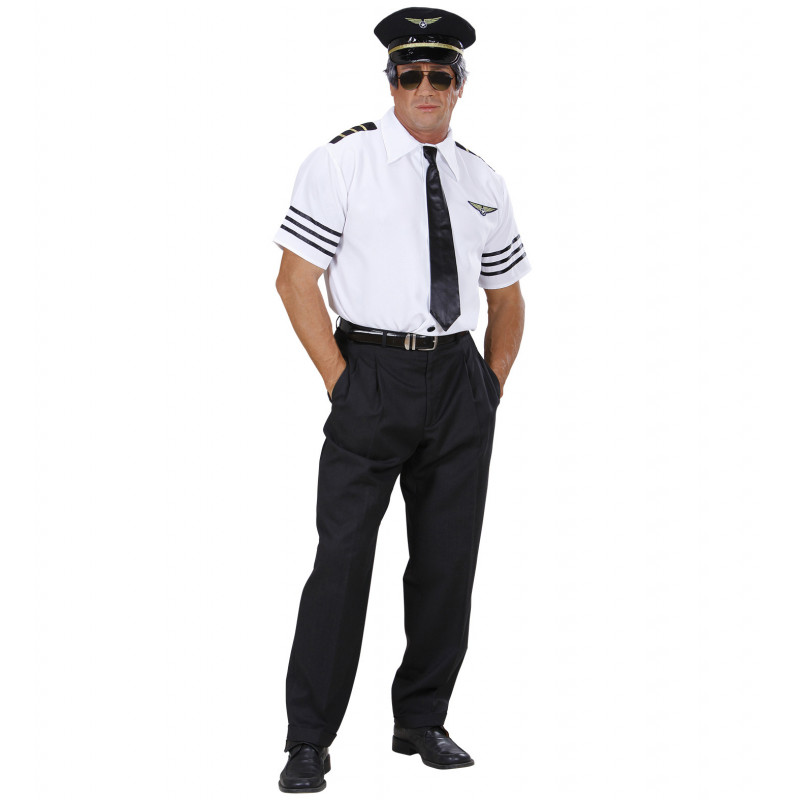 Ce déguisement de pilote contient: chemise, cravate, chapeau.