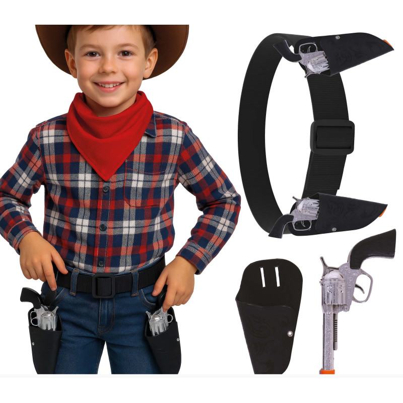 Set ceinture double + 2 pistolets enfant cowboy.