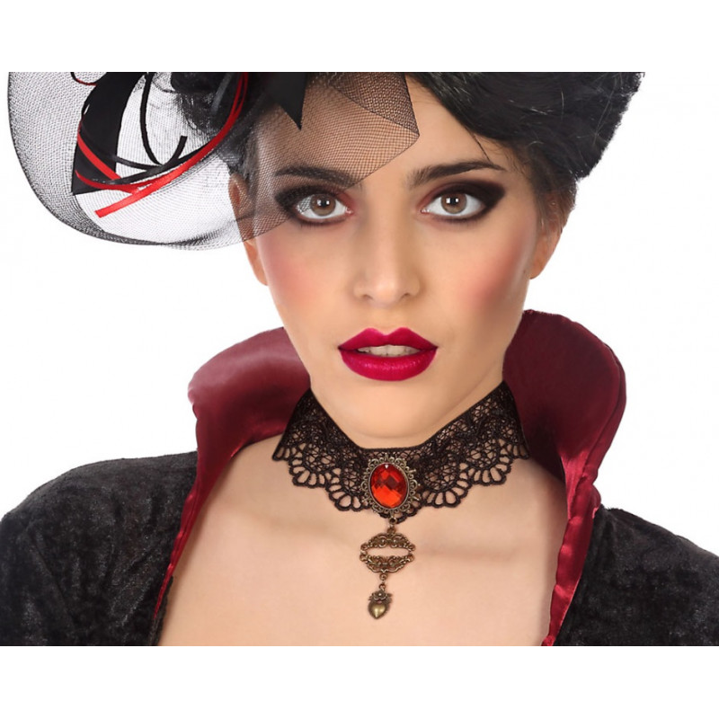 COLLIER GOTHIQUE RAS-DU-COU PIERRE ROUGE