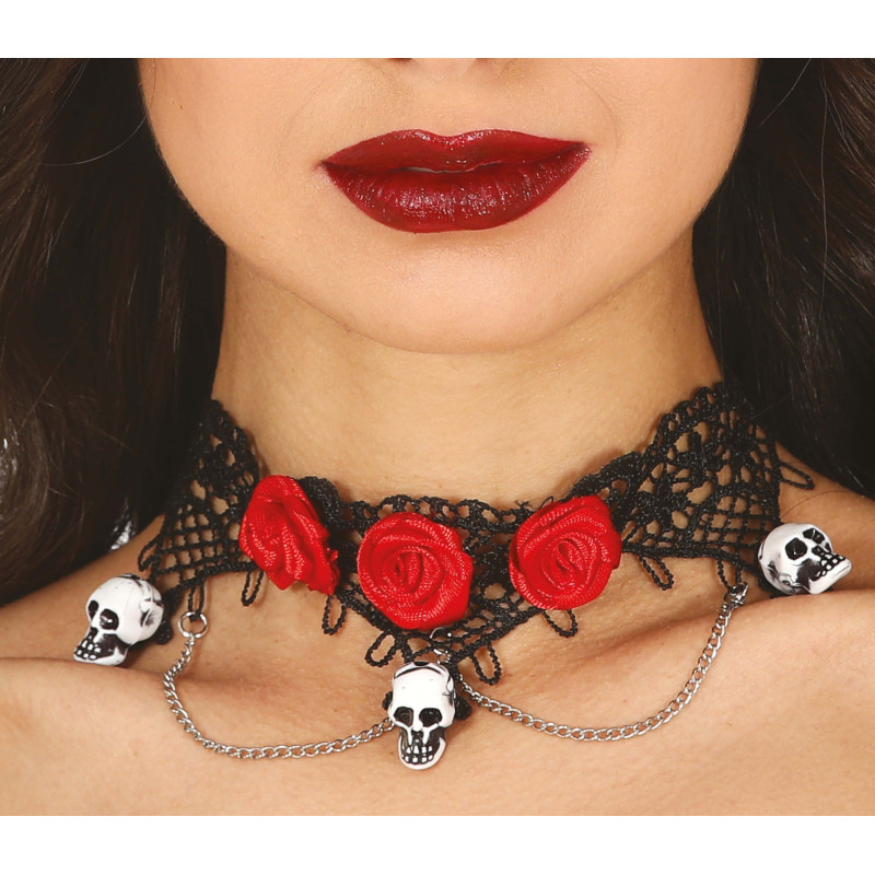 COLLIER TOUR DE COU GOTHIQUE CRANES ET ROSES