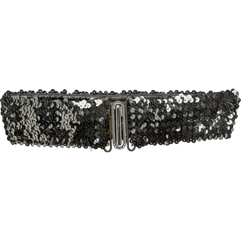 Ceinture stretch à sequins noirs.