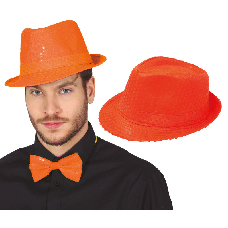 Chapeau funky, à sequins, orange fluo.