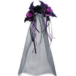 Serre-tête noir avec voile et fleurs noires/lilas.