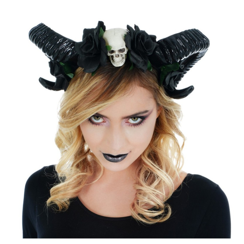 Serre-tête luxe créature maléfique crâne/cornes/fleurs.