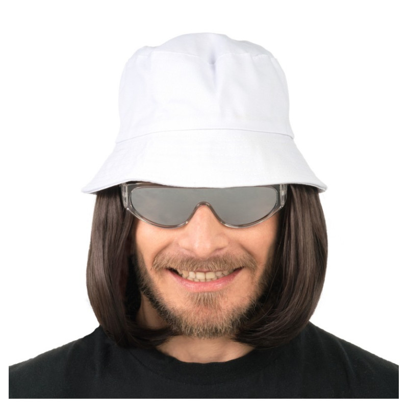 BOB BLANC AVEC PERRUQUE CHEVEUX NOIRS