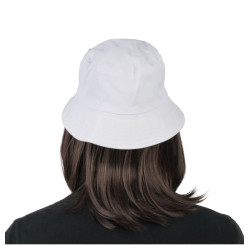 Bob blanc avec perruque cheveux noirs.