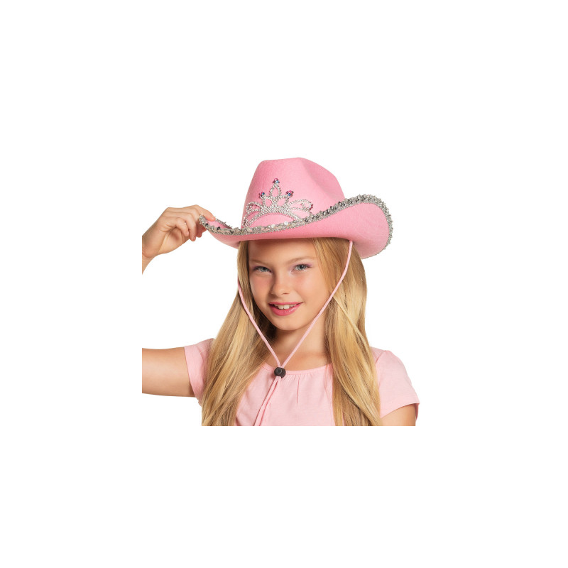 CHAPEAU COWBOY ROSE AVEC DIADEME ENFANT