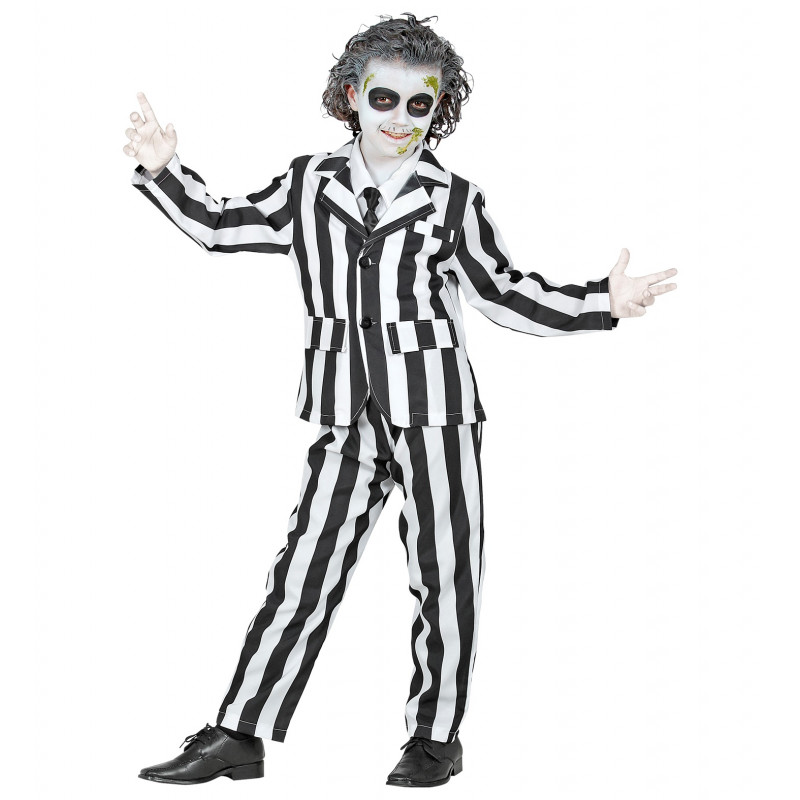 Ce déguisement de fantôme fou contient: veste, pantalon, cravate.