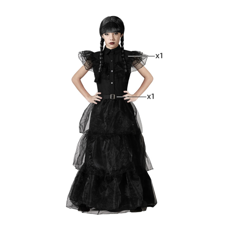 Ce déguisement de bal gothique, contient: robe longue, ceinture.