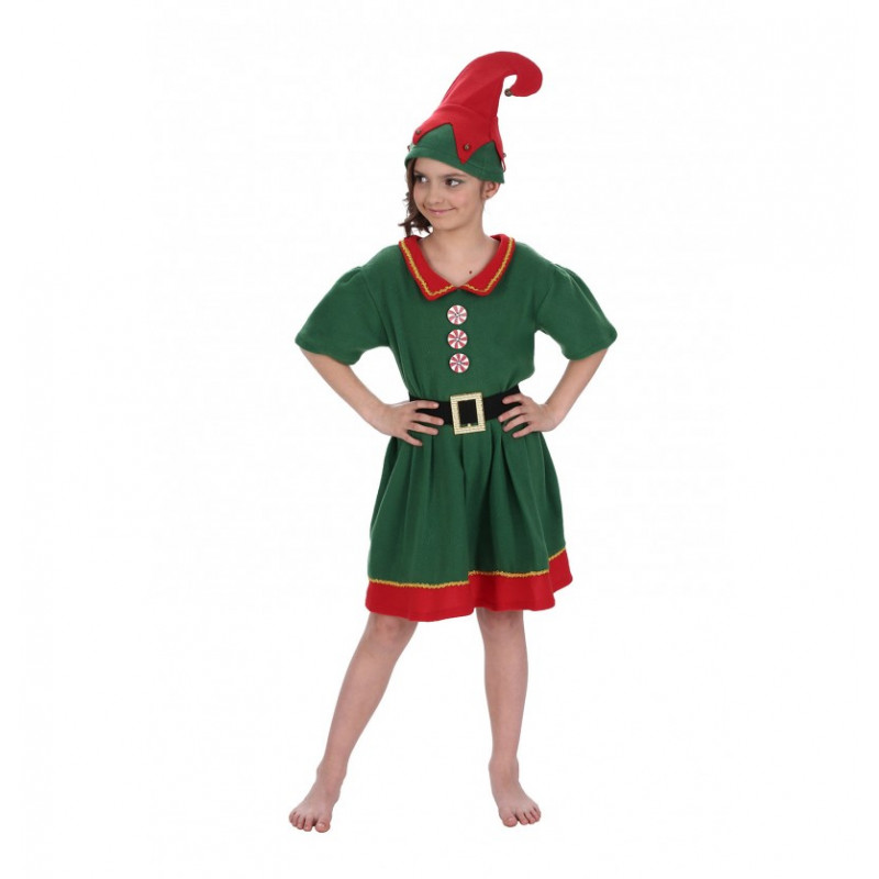 Ce déguisement de lutin de noël, contient; robe, bonnet.