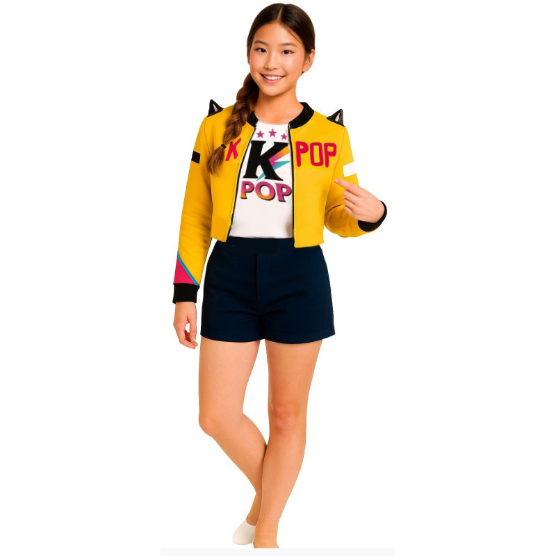 Ce déguisement de danseuse Kpop, contient: veste, jupe, t-shirt.