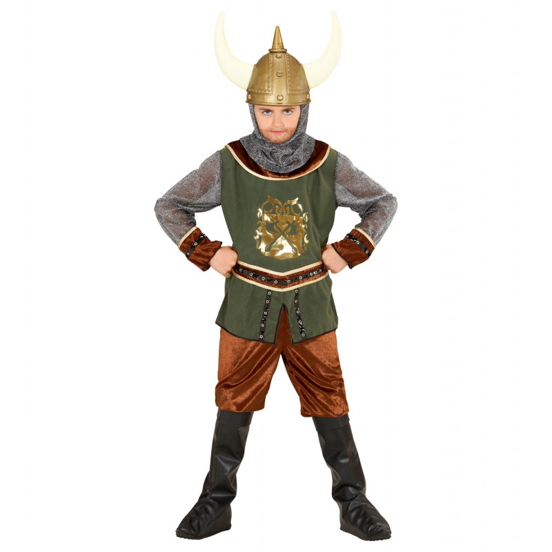 Ce déguisement de viking contient : casaque, pantalon, surbottes, capuche.
