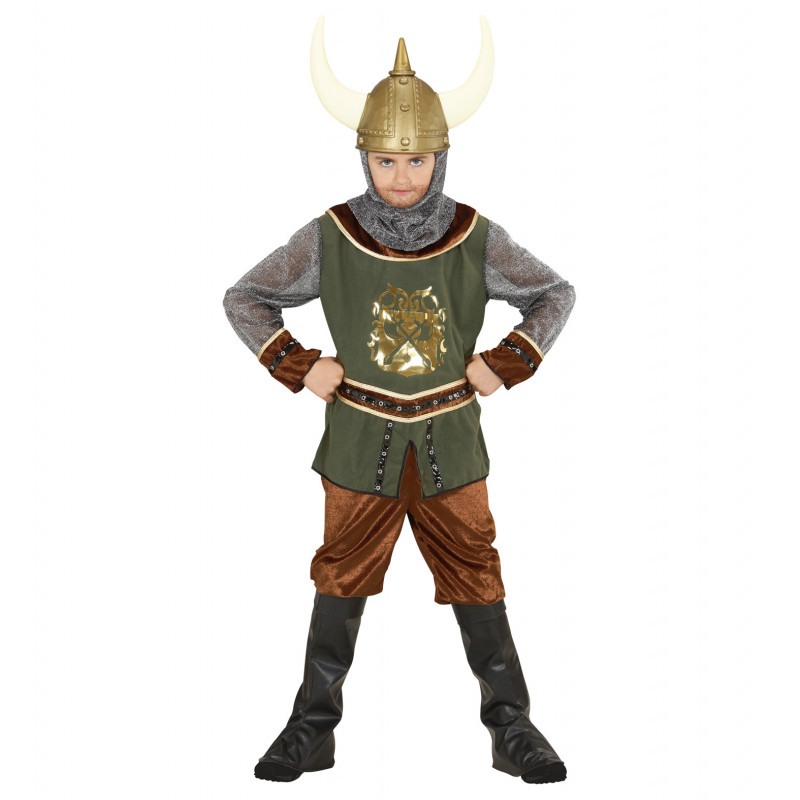 Ce déguisement de viking contient : casaque, pantalon, surbottes, capuche.