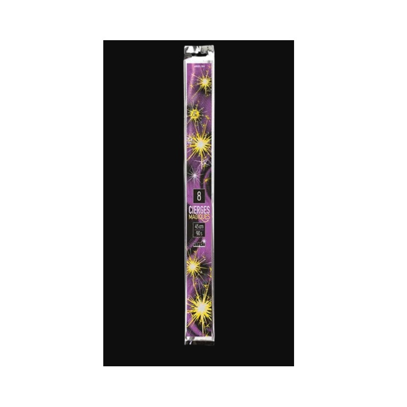 8 cierges magiques, 45cm. Catégorie: F1, durée: 1min30. Produit disponible uniquement en click and collect.