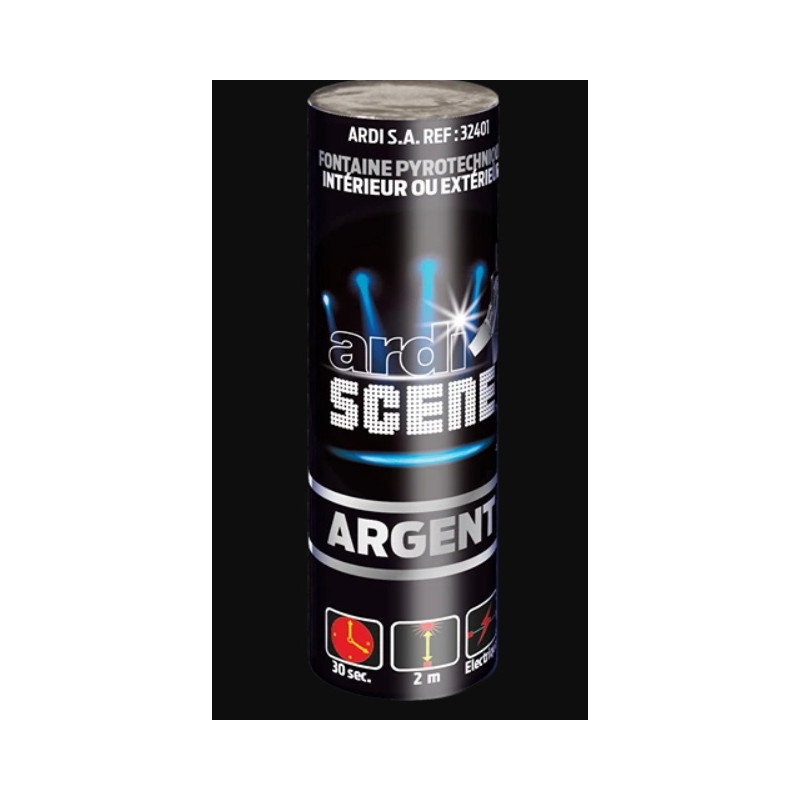 Jet de scene, hauteur: 2M, durée: 30secondes. Argent. Catégorie: T1. Produit disponible uniquement en click and collect..