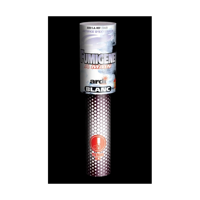 Fumigène à main, blanc. Durée: 45sec env. Catégorie: T1. A utiliser en extérieur. Produit disponible uniquement en click and collect.