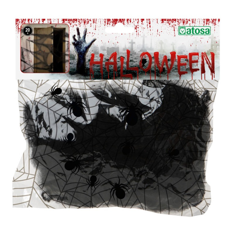 Toile d'araignée noire 20g + 2 araignées.