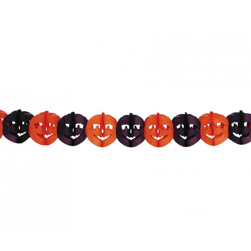 Guirlandes citrouilles noir/orange. Hauteur: 22cm, longueur: 3M.