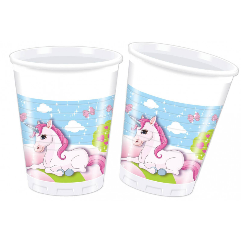 8 gobelets licorne, en plastique. Contenance: 20cl.