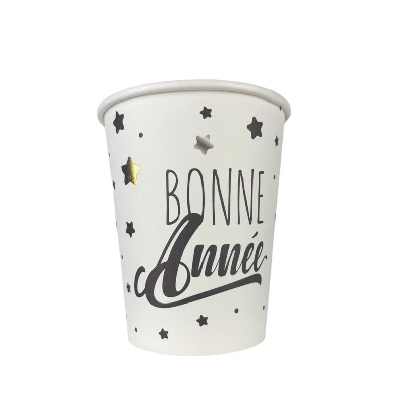 Lot de 8 gobelets, en carton, "Bonne année". Contenance: 25cl.