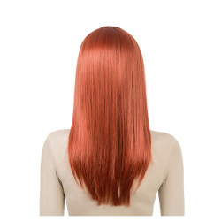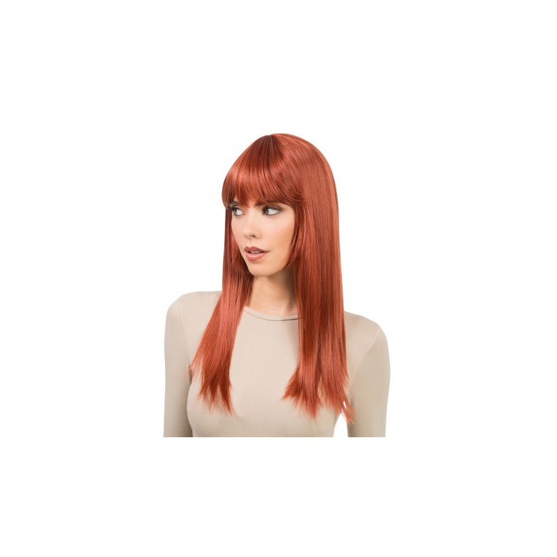 Perruque luxe longue avec frange, rousse. Longueur: 58cm.