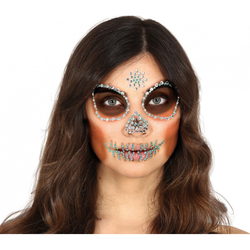 BIJOUX ADHESIFS POUR VISAGE TETE DE MORT VERT