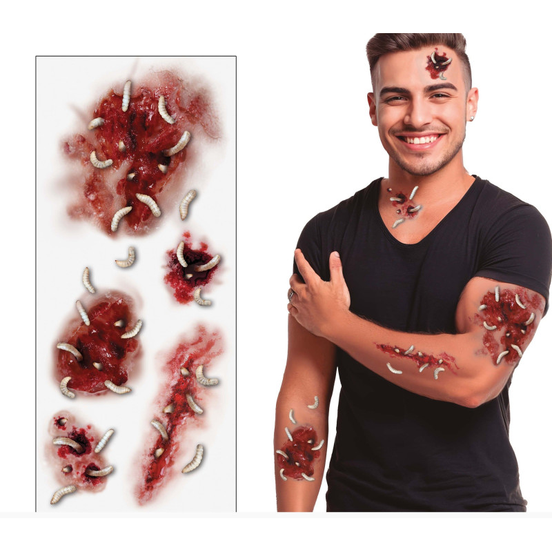 TATOUAGE CICATRICES AVEC ASTICOTS 30x13cm