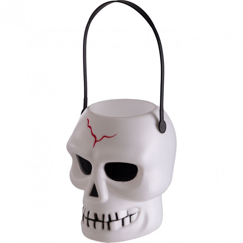 Seau tête de mort. Hauteur: 16cm. En plastique.
