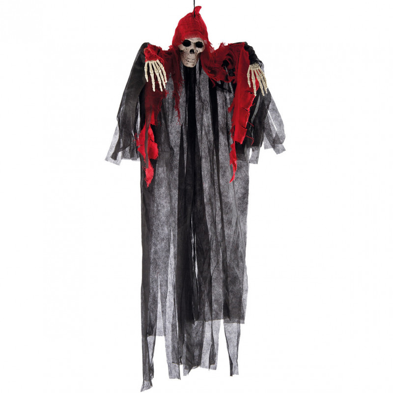 Grim-reaper rouge/noir à suspendre. Taille: 120cm env. Produit disponible uniquement en click and collect.